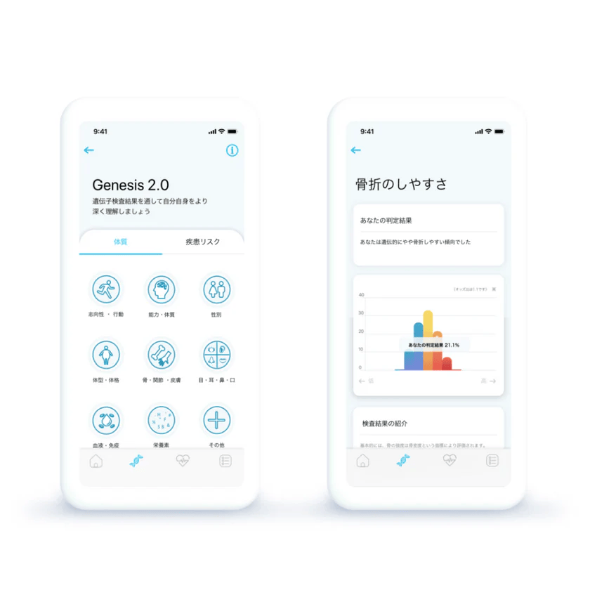 「GeneLife 3.0」アプリには、遺伝子検査結果の閲覧のほか、さまざまなサービスやコンテンツをご用意しております。ぜひアプリストアよりダウンロードしてください!